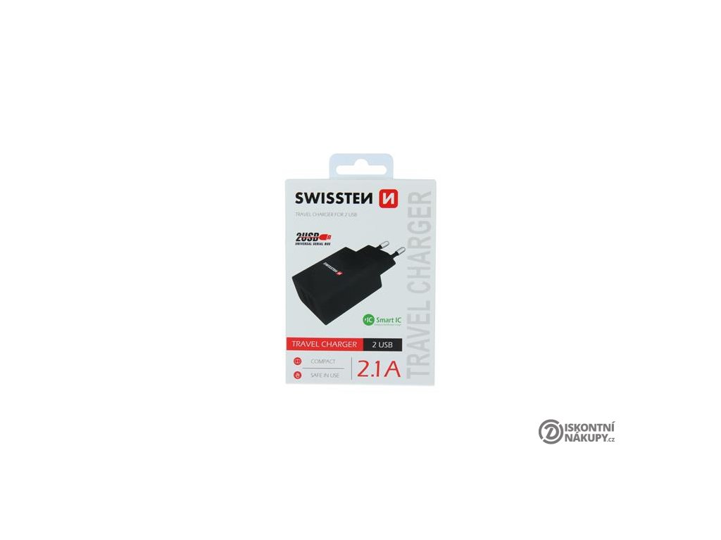 SWISSTEN SÍŤOVÝ ADAPTÉR SMART IC 2x USB 2,1A POWER ČERNÝ