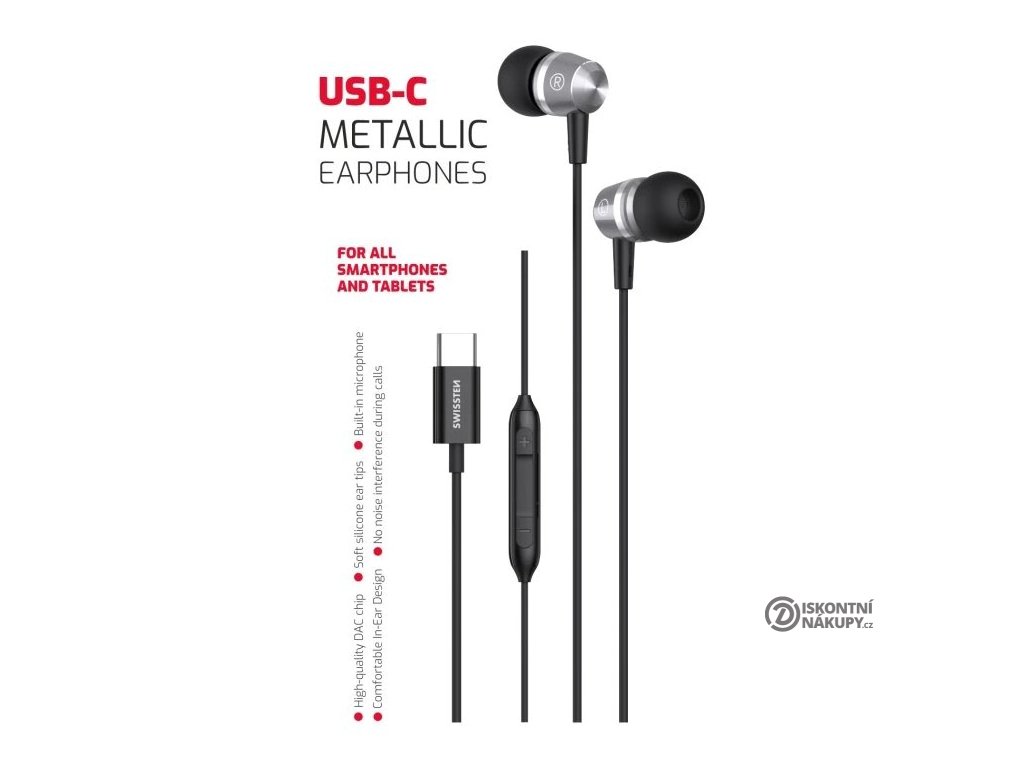Swissten usb-c sluchátka metallic černá 51109100