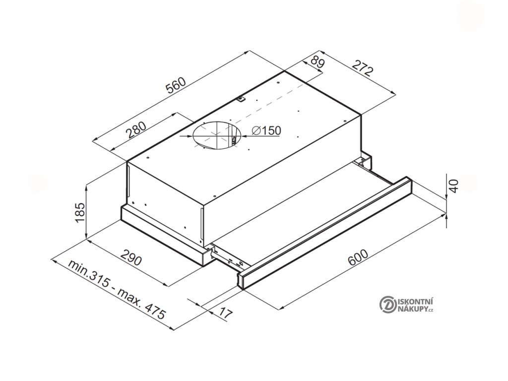 Min. vzdálenost mezi odsavačem a elektrickou varnou deskou: | 40 cm |