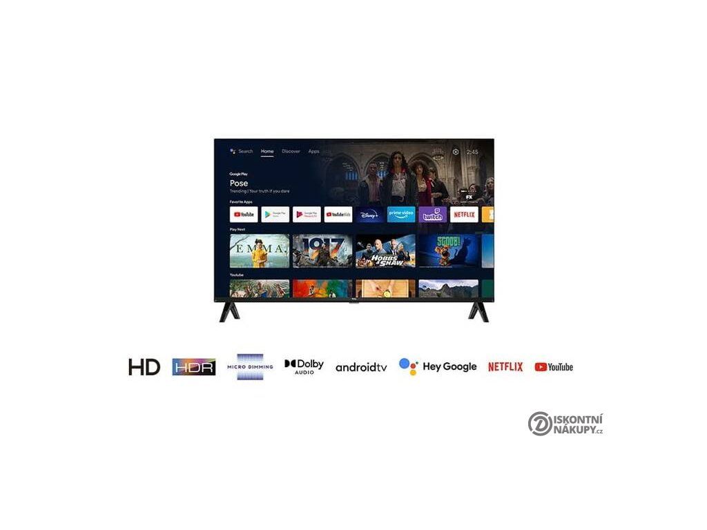 32" (80 cm) Full HD • rozlišení 1920 × 1080 px • DVB-C/S2/T2 • kodek HEVC (H.265) – nový digitální standard • LED displej • Direct LED podsvícení • Smart TV – internetový prohlížeč • 700 PPI • HbbTV • HDR/HDR10 • 2× HDMI 1.4 • 1× USB 2.0 • OS Android TV • Bluetooth • Chromecast • MagiConnect T-cast • Wi-Fi • zrcadlení obrazu • sluchátkový výstup • VESA: 100 × 100 mm