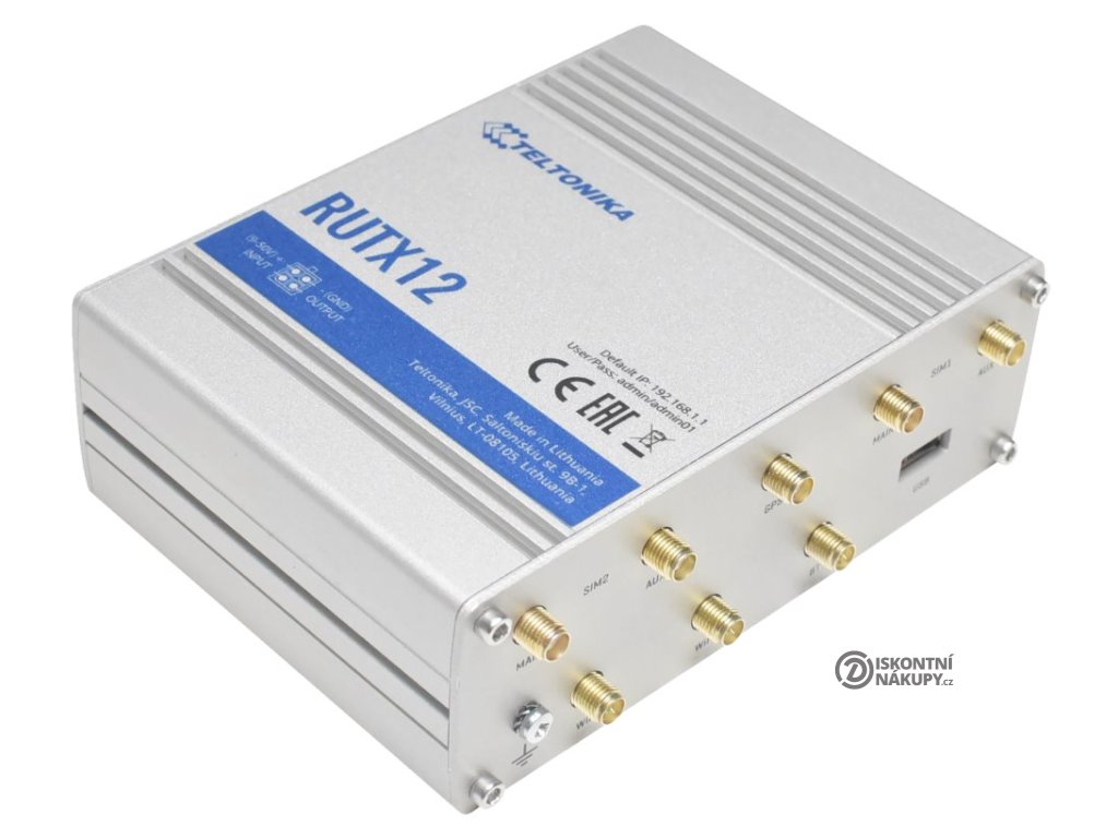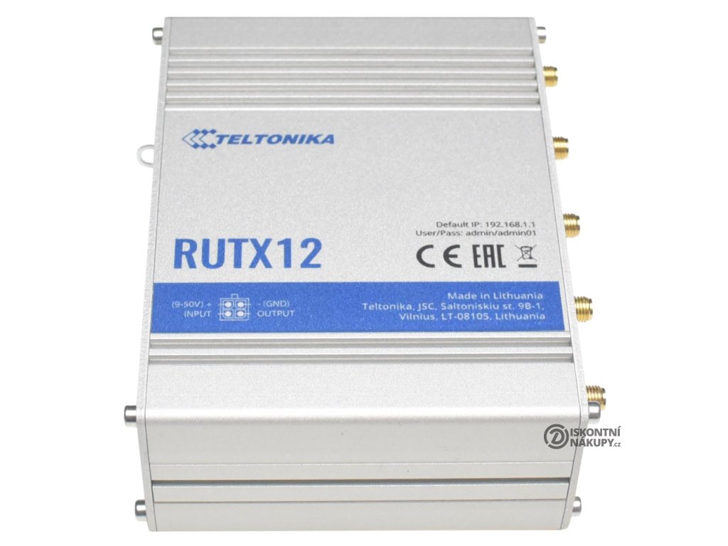 Teltonika RUTX12Odolný a výkonný průmyslový LTE router určený pro technologie LTE/GNSS a WLAN. Patří do skupiny kompaktních, cenově výhodných a bezpečných průmyslových IoT směrovačů, jenž garantují vysoký výkon v prostředí s rozsáhlou škálou provozních teplot. Je vybaven dvěma sloty pro SIM a čtyřmi GbE porty, Dual-Band AC Wi-Fi, Bluetooth LE, LED indikátory digitálních vstupů/výstupů a stavovými LED diodami, které znázorňují úroveň přijímaného signálu z mobilní sítě. Dále je vybaven dvěma nezávislými LTE modemy pro souběžné a vzájemně se zálohující LTE připojení. Integrovaný přijímač GPS zajišťuje stálé informace o pozici směrovače. Tento router je ideální pro pokročilé průmyslové a podnikové aplikace.