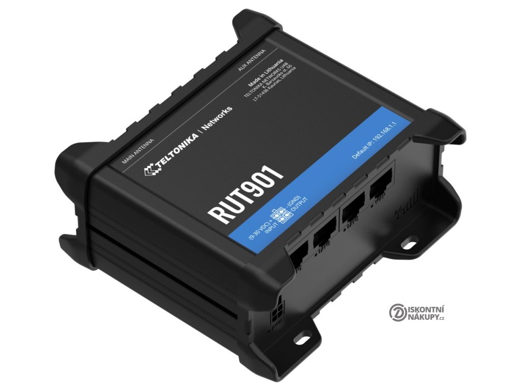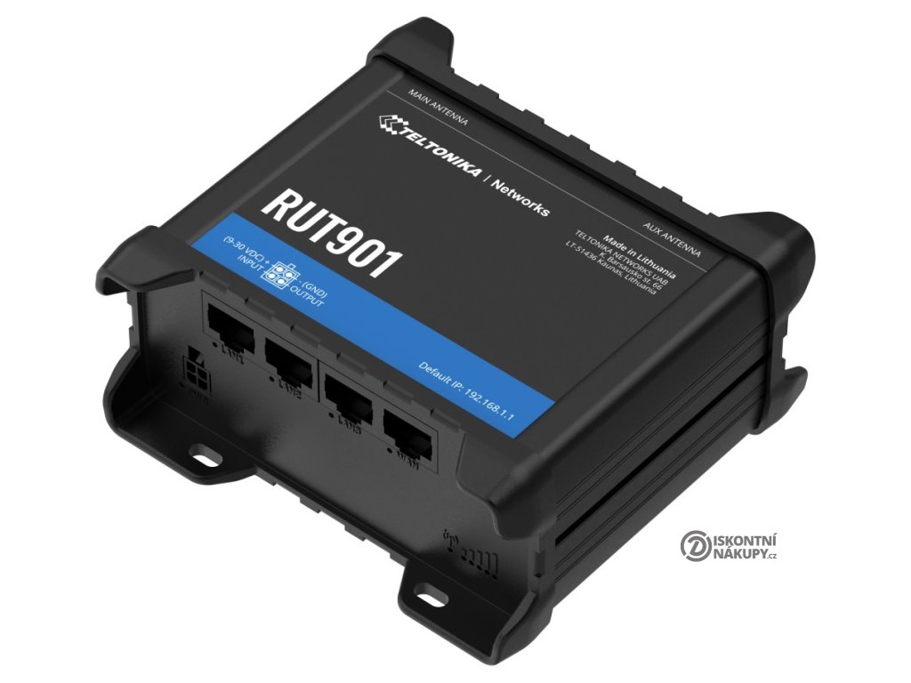 Teltonika RUT901Průmyslový mobilní směrovač (router), který poskytuje spolehlivé připojení v náročných podmínkách průmyslového odvětví (automatizace, doprava, výroba atd.).