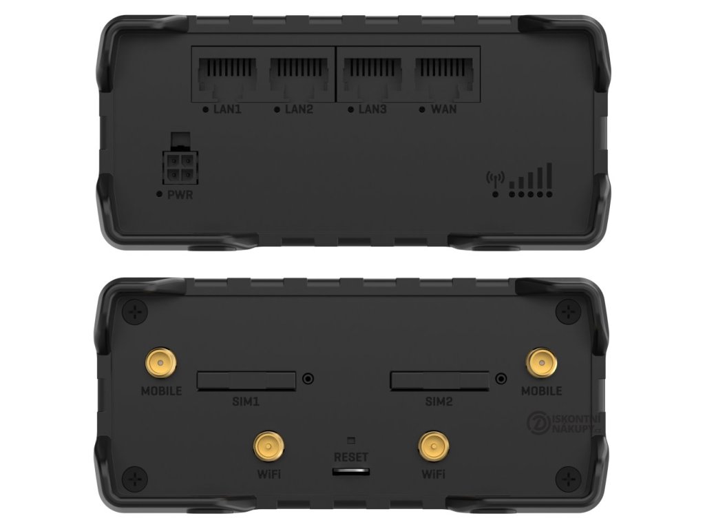 Porty: 4× RJ-45 (3× LAN, 1× WAN), 2× SIM slot (mini SIM, formát 2FF)