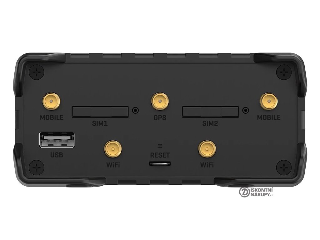 Porty: 4× RJ-45 (1× WAN, 3× LAN), 2× SIM slot (mini SIM, formát 2FF), 1× USB, 1× RS-232, 1× RS-485, 1× DI, 1× DO, 1× 10pin průmyslová zásuvka pro vstupy/výstupy