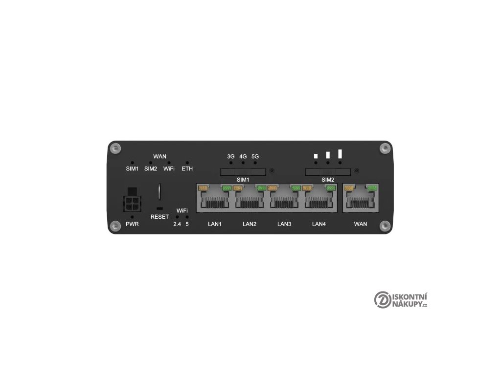 Porty: 5× RJ-45 (1× WAN, 4× LAN), 2× SIM slot (mini SIM, formát 2FF), 1× USB, 1× DI, 1× DO