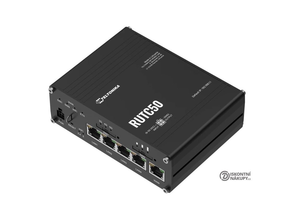 Teltonika RUTC50Průmyslový mobilní router, který poskytuje spolehlivé připojení v náročných podmínkách průmyslového odvětví (automatizace, doprava, výroba atd.).