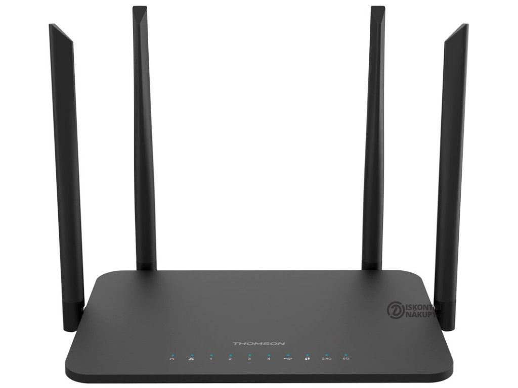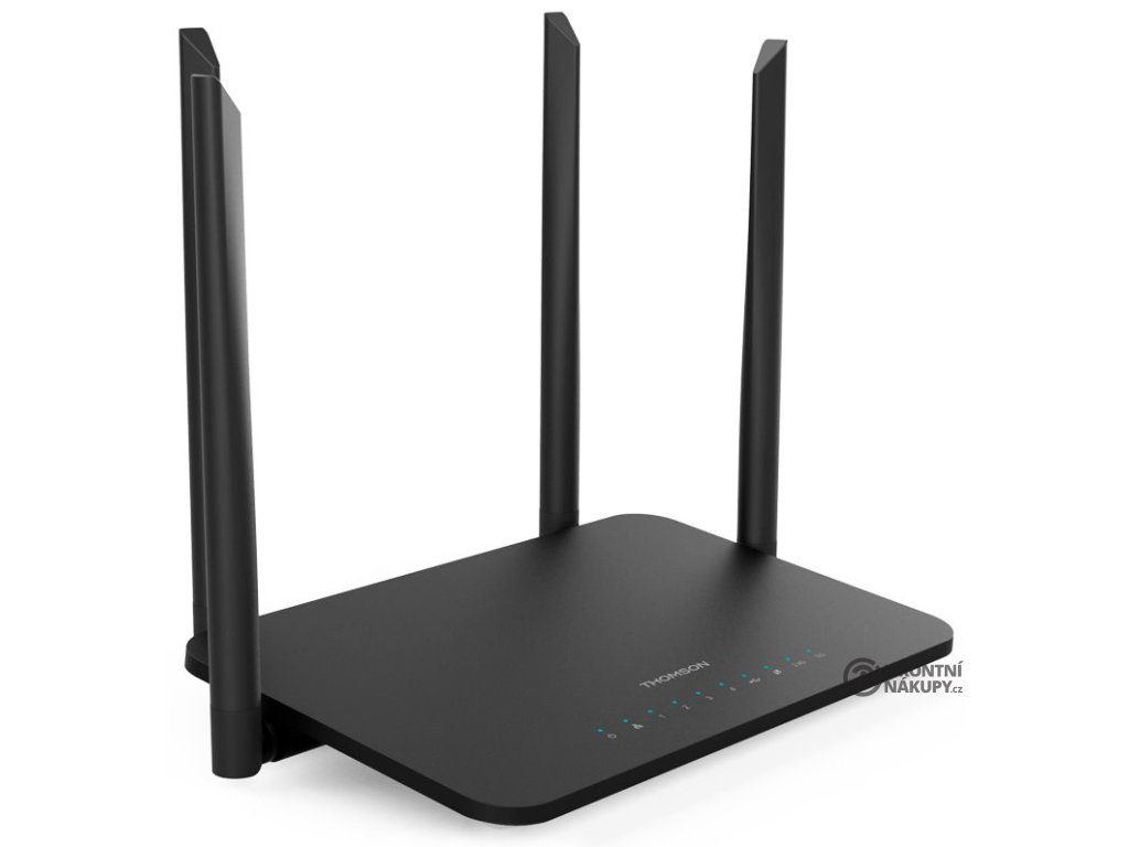 Thomson THWR 1200Wi-Fi router s podporou standardů 802.11a/b/g/n/ac, který v pásmu 5 GHz nabízí rychlost bezdrátového přenosu až 867 Mb/s a v pásmu 2,4 GHz poskytuje rychlost až 300 Mb/s. Disponuje čtyřmi anténami se ziskem 5 dBi pro široké bezdrátové pokrytí. Z portů jsou k dispozici čtyři GbE RJ-45 LAN, jeden GbE RJ-45 WAN a jeden USB 2.0 port pro sdílení tiskáren a úložišť. Samozřejmostí je snadné nastavení a instalace díky WPS tlačítku.