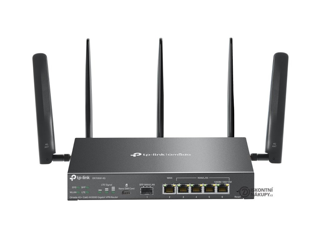 TP-Link ER706W-4G Omada VPN Router, 1x Nano SIM slot (4G+ Cat6), WiFi 6 2402 Mbps 5GHz + 574 Mbps 2.4GHz, 1x SFP GWAN/ ER706W-4G