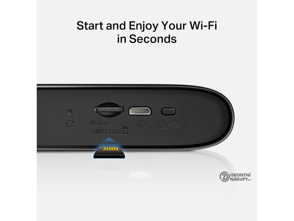 Pro zapnutí MT110 stačí vložit SIM kartu a stisknout tlačítko napájení. Díky malému a uživatelsky přívětivému designu bude váš 4G hotspot plně funkční během půl minuty.