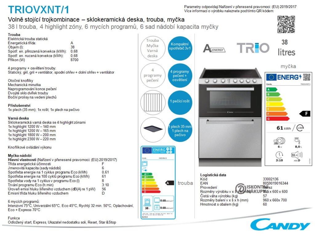 Trio je jediné řešení pro opravdu málo místa v kuchyni. Trouba, varná deska a myčka nádobí v jednom. Ušetříte místo a zároveň nemusíte dělat žádné kompromisy ve funkcích. Díky standardním rozměrům můžete k vaření používat nádobí běžných velikostí a umývat až šest sad nádobí.