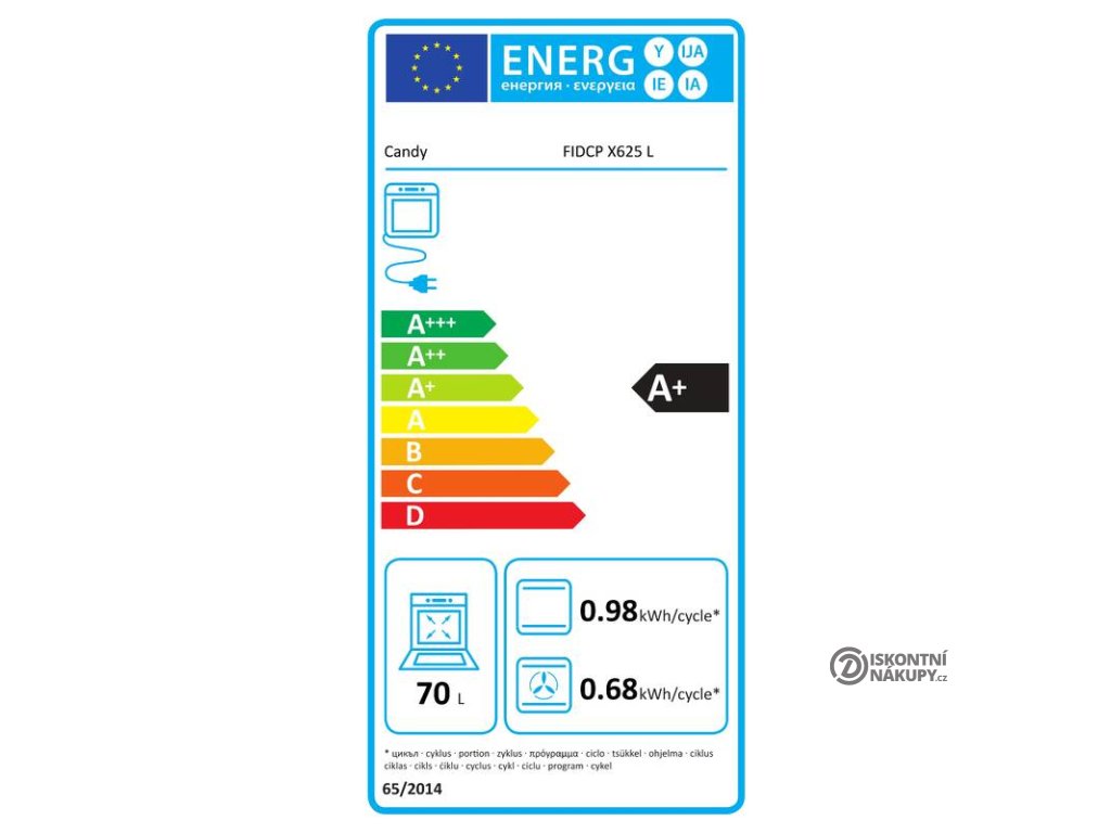 Chcete vybavit svou kuchyni moderním spotřebičem? Vestavná trouba CANDY FIDCP X625 L IDEA vám nabídne objem 70 litrů a plno praktických funkcí. Nabízí elegantní design v černém a nerezovém provedení, který krásně zapadne do vašeho interiéru. S CANDY FIDCP X625 L IDEA navíc ušetříte, spadá do energetické třídy A+. Čištění zvládnete snadno za pomoci funkce Aquactiva. S funkcí Cooklight si zase uvaříte zdravě - bez zbytečného oleje či dalšího tuku. O vaši bezpečnost se postarají nerezové drátěné pojezdy pro vedení plechů, díky kterým snadno vyndáte nachystaný oběd.