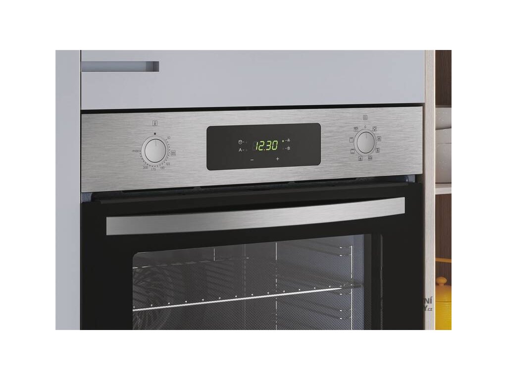 Moderní design a srozumitelný displej v kombinaci s otočnými zamačkávacími knoflíky vám umožní si pečení užívat, aniž byste museli studovat komplikované návody. Ovládací knoflíky jsou moderní, zamačkávací, aby nedošlo k nechtěnému spuštění trouby a také nevystupovaly do prostoru, což oceníte zejména při úklidu trouby. Dotykový displej se zeleným světlem vám umožní nastavení doby pečení, časovače a slouží také jako přehledný displej pro kontrolu času. Levý knoflík je pro nastavení teploty pečení a pravý knoflík je určený pro výběr pečicího programu či světla.