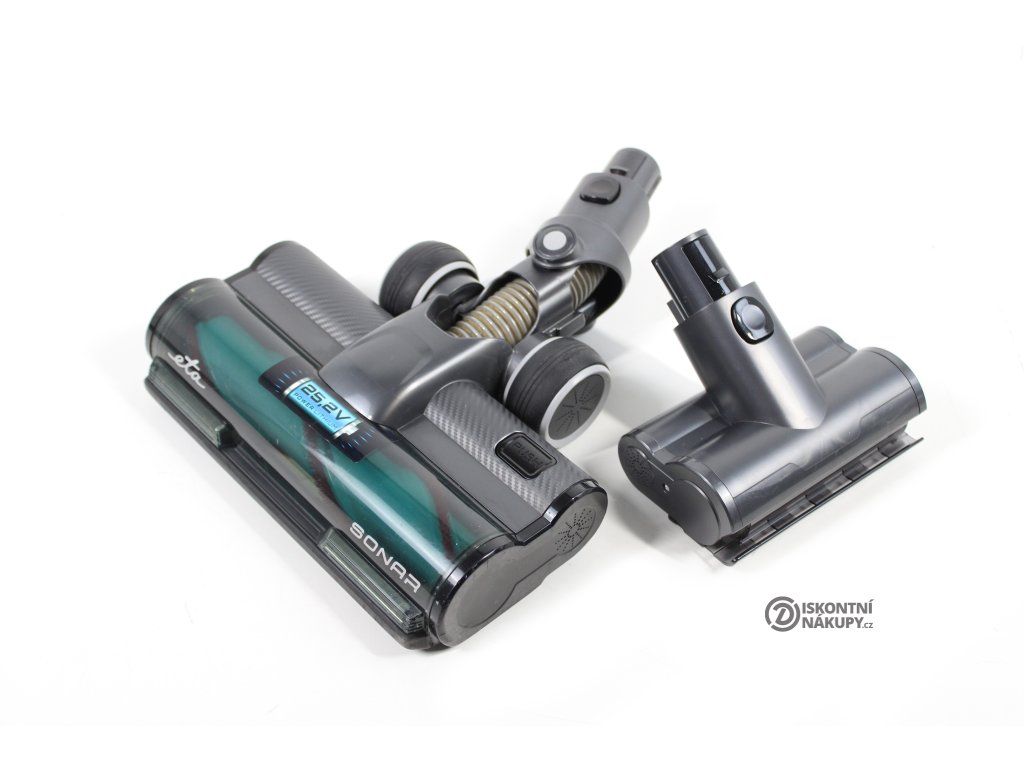 tyčový a integrovaný ruční vysavač • napájení: Li-Ion 25,2V, výdrž až 40 minut • 2× HEPA filtr • objem odpadní nádoby: 0,5 l • LED osvětlení na hubici • 3 úrovně sacího výkonu • digitální motor • příslušenství: velký rotační turbokartáč s flexibilním kloubem, malý elektrický turbokartáč, extra dlouhá štěrbinová hubice SOFT TOUCH, kartáček + polštářová hubice 2 v 1