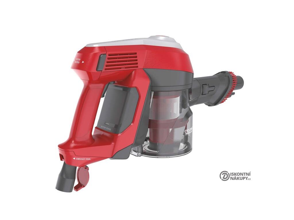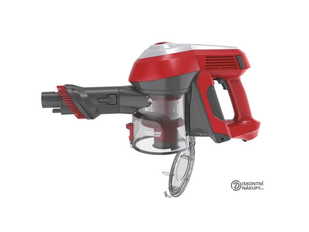 Tyčový vysavač, 2v1, bezsáčkový, objem nádoby 0,9 l, výkon 170 W, baterie Li-Ion, doba provozu 40 min, doba nabíjení 6 h, filtr látkový, motorizovaný kartáč, hubice štěrbinová, prachový kartáč, LED osvětlení