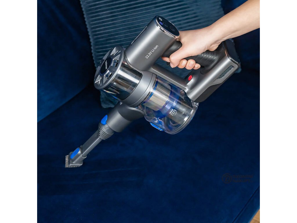 Bezšňůrový akumulátorový vysavač, maximální pracovní doba: 35 min, Hepa filtr, cyklónový systém.