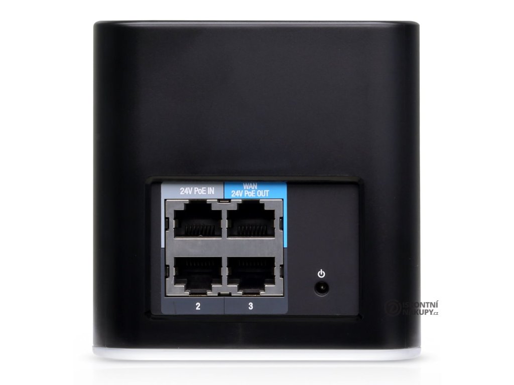 AirCube AC má čtyři Gbit RJ45 porty, z toho dva porty jsou PoE. Port PoE IN slouží pro napájení samotného routeru, port PoE Out podporuje pasivní PoE 24V na výstupu.