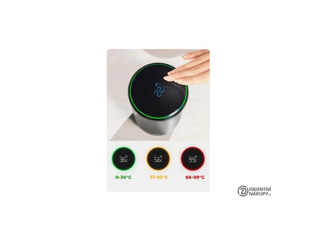 Cooling Cup C2 nabízí kvalitní barevný a dotykový LCD displej, který Vám ukáže kdykoliv teplotu tekutiny v láhvi. Kromě teploty je zde barevný proužek po obvodu pro rychlý náhled teploty. Zelená barva pro teploty do 36°C, oranžová barva od 37°C do 65°C a červená pro teploty nad 66°C.