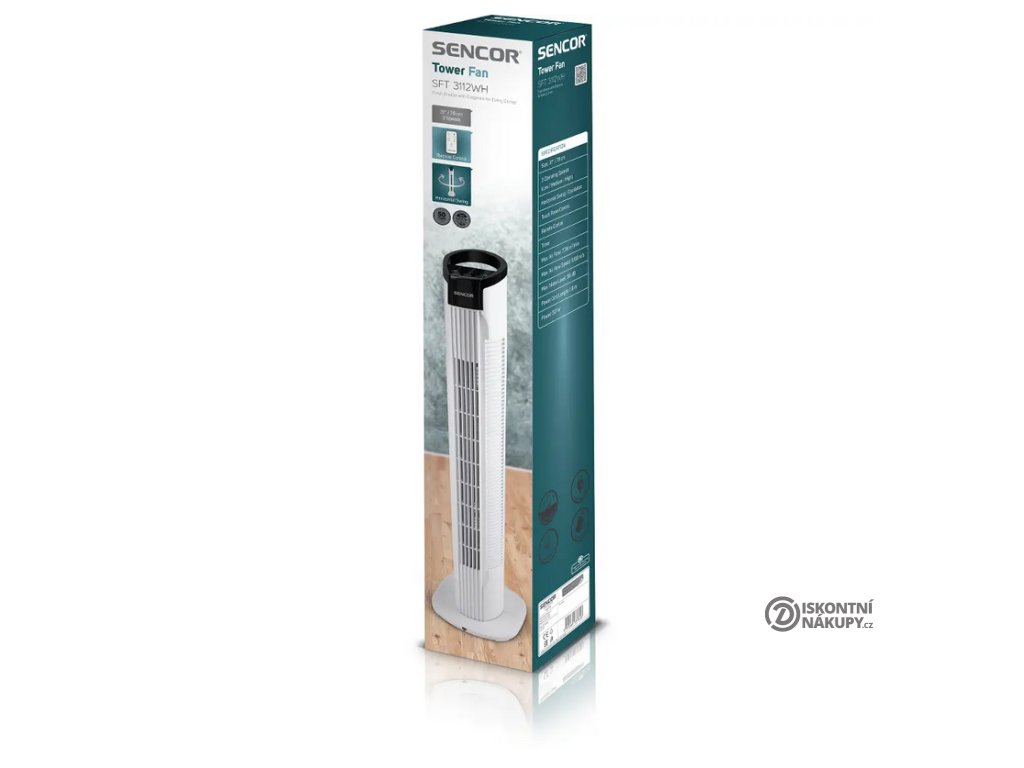 Dopřejte si osvěžující vzduch i během horkých letních dní. Sloupový ventilátor Sencor SFT 3112WH s výkonem 50 W zajistí příjemný vánek, který si můžete dopřát doma i v kanceláři. K dispozici jsou 3 rychlosti a stejné množství provozních režimů pro nastavení dle aktuálních potřeb. O snadné ovládání se postará buď dotykový panel nebo dálkové ovládání. Vhod vám přijde i časovač nabízející automatické vypnutí v rozmezí 30 minut až 7,5 hodin.