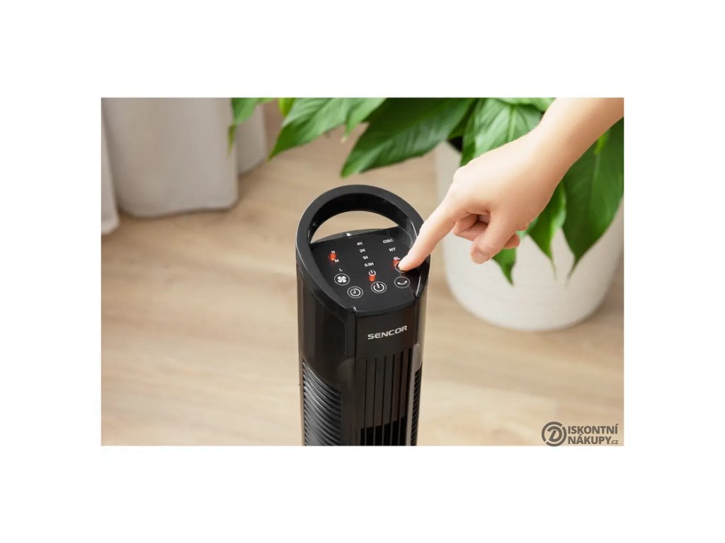Snadné ovládání má na starost funkční dotykový panel na horní straně. Pomocí dálkového ovládání můžete navíc ventilátor od značky Sencor nastavovat i z pohodlí sedačky nebo postele. Plně k dispozici je i časovač s funkcí pro automatické vypnutí v rozmezí od 30 minut do 7,5 hodin.