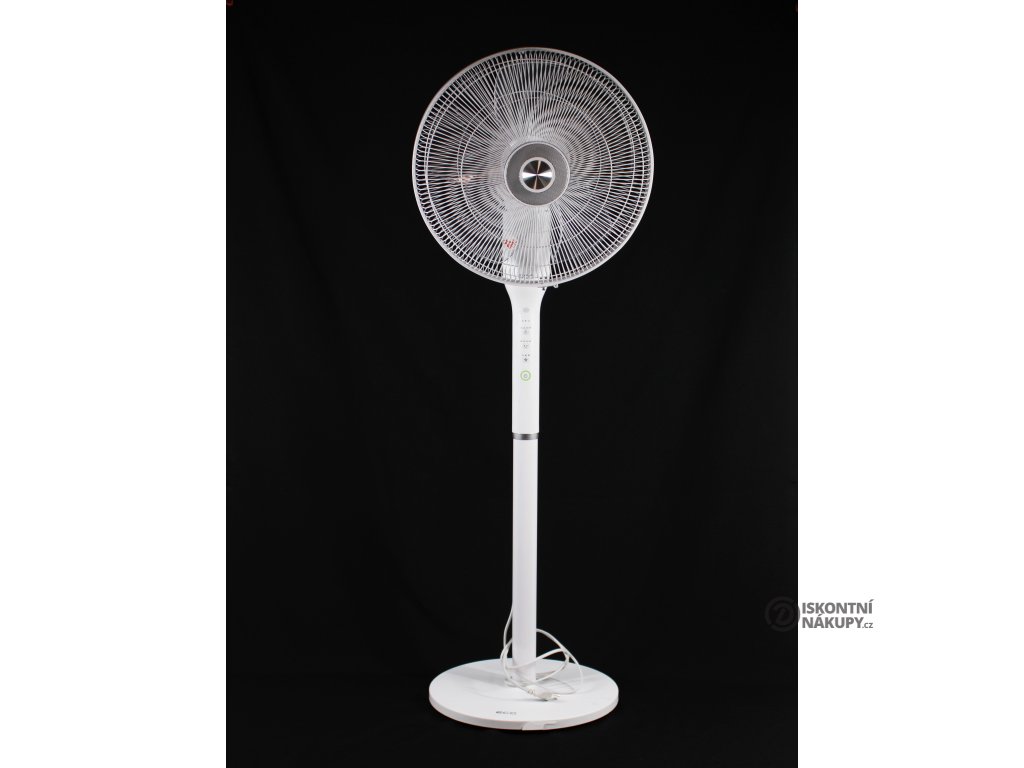 stojanový ventilátor • průměr vrtule 30 cm • 3 lopatky • 3 režimy • 3 rychlosti • možnost instalace na stolní • horizontální oscilace • vertikální nastavení sklonu hlavy • časovač • dálkové ovládání • LED diody • hlučnost 35 - 62 dB • příkon 40 W • hmotnost: 8,5 kg • výška 136 cm