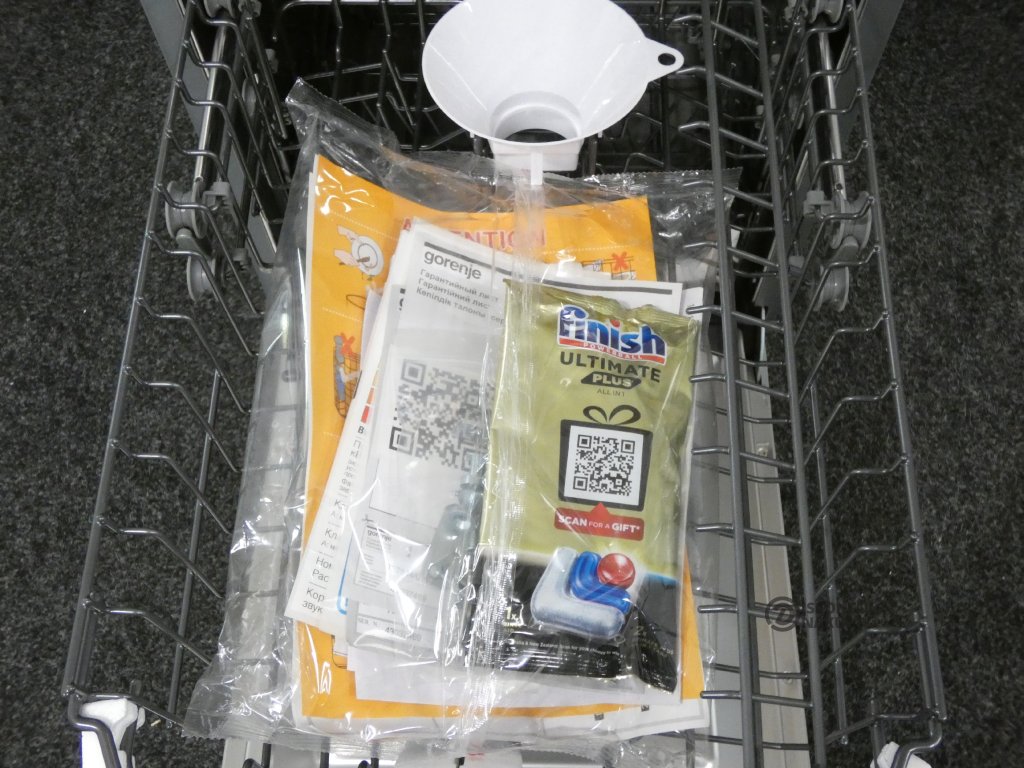 Samozřejmostí u myčky GV520E10 je pak ochrana Total AquaStop. Ta v případě úniku nebo zaplavení automaticky uzavře přívod vody, zatímco čerpadlo odčerpá zbytkovou vodu z vany myčky. Délka přívodního kabelu je 150 cm. K dispozici je uživatelům také ukazatel nedostatku soli i leštícího prostředku. Na jeden mycí cyklus spotřebuje myčka Gorenje pouze 9,5 l vody. To je mnohonásobně méně, než kdybyste každý kousek nádobí umývali ručně.