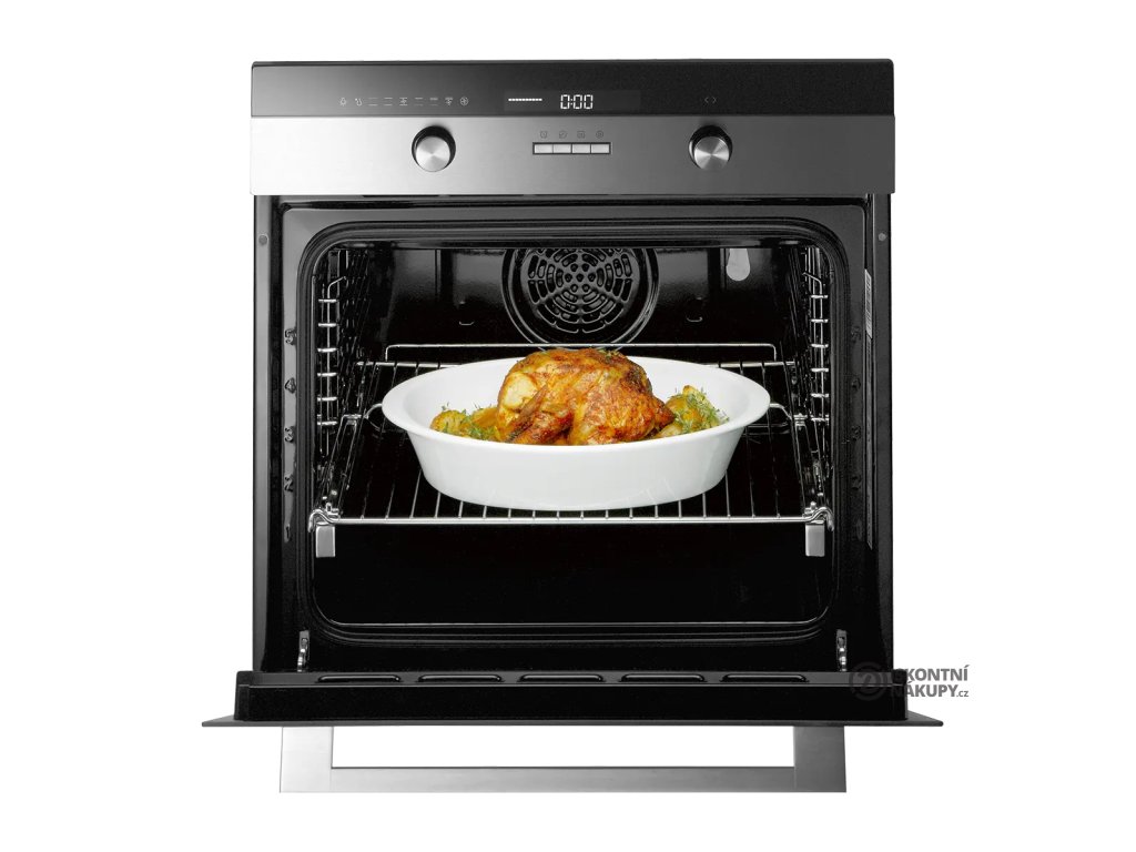 Vestavná trouba Concept ETV6060 nabízí 9 funkcí pečení včetně horkovzduchu a grilu. Ventilátor, který při horkovzdušném pečení rozhání horký vzduch po vnitřním prostoru trouby, zajišťuje konstantní teplotu pro přesný ohřev. Při horkovzdušném pečení není nutné troubu předehřívat a můžete v ní péct několik plechů najednou, čímž ušetříte spousty času i elektrické energie. Na model ETV6060 poskytujeme garanci rovnoměrného pečení.