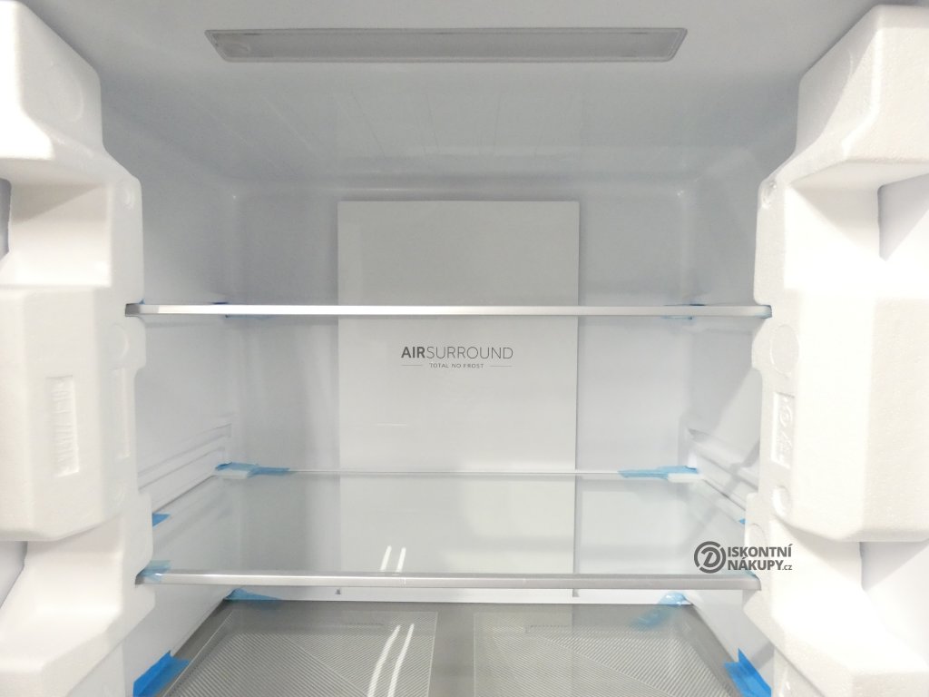 S technologií Haier Air Surround Fresher Tech proudí vzduch uvnitř chladničky jemnějším a šetrnějším způsobem. Díky speciálním bočním průduchům, odkud je vzduch šířen, distribuuje tento systém homogenně studený vzduch v celém prostoru chladničky, čímž se zabrání přímému foukání na potraviny a ztrátě hmotnosti a vysušení potravin. To je důvod, proč Haier Air Surround zachovává chuť, konzistenci a šťavnatost jídla až o 99 %* po 7 dnech jako v Den 1.