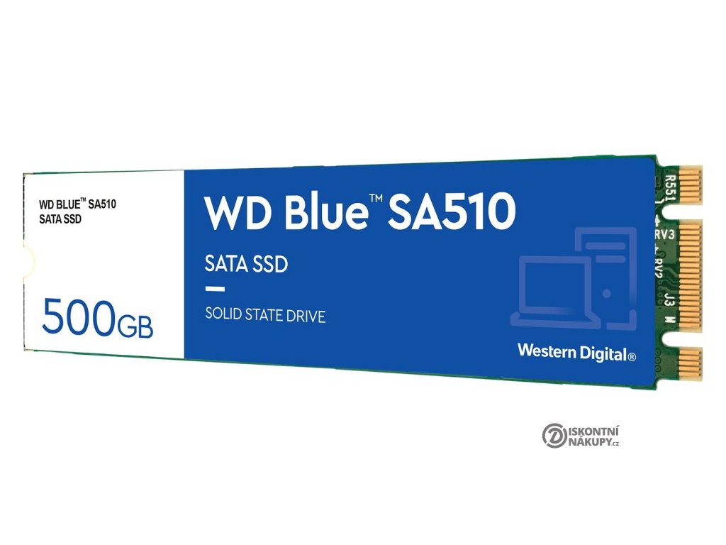 WD Blue SA510 M.2 500 GBSSD disk WD Blue SA510 SATA. Formát disku je M.2 (2280) a kapacita 500 GB.