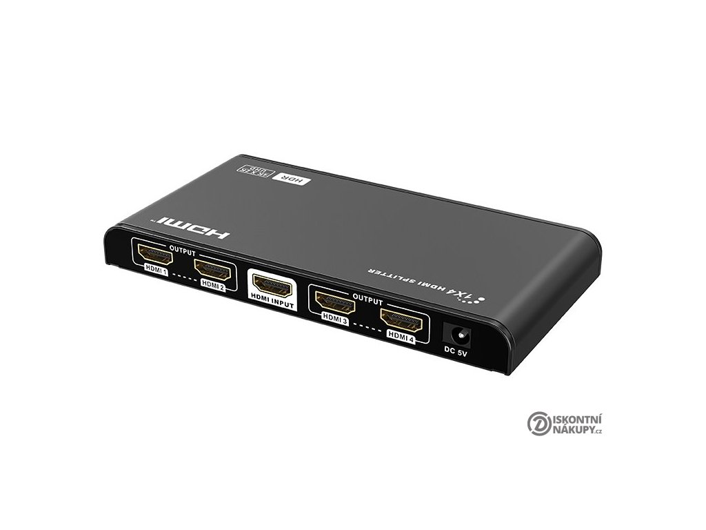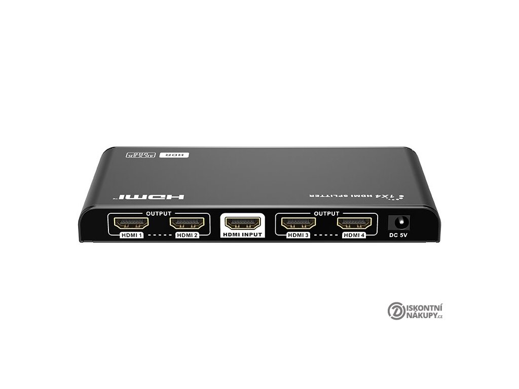 XtendLan HDMI-DA14E-4kHDMI distribuční rozbočovač z jednoho vstupu na čtyři shodné výstupy. Podpora rozlišení do 4K × 2K 60 Hz.
