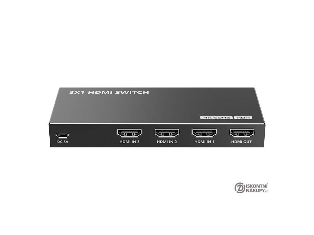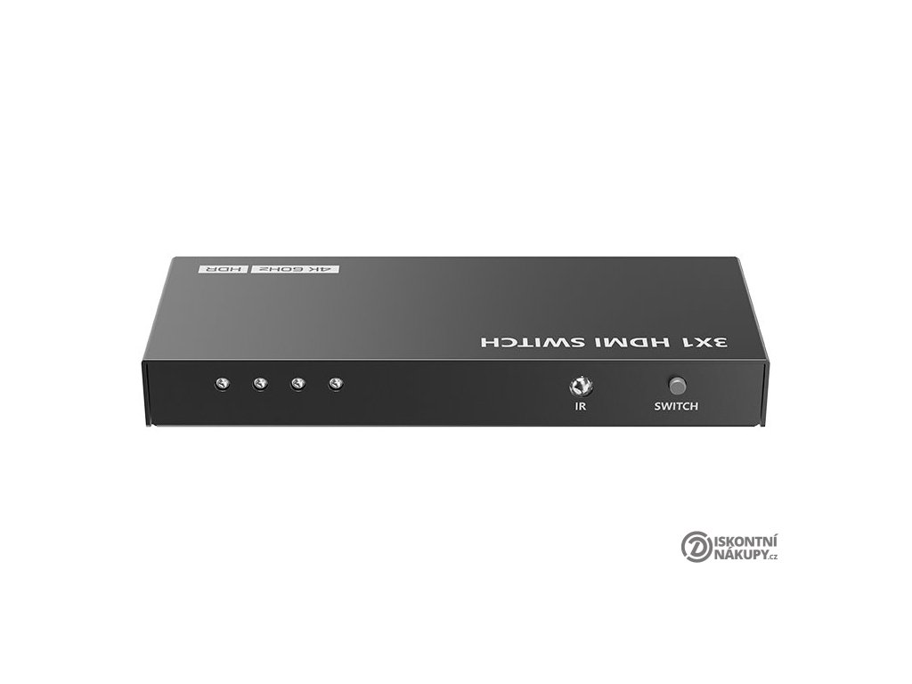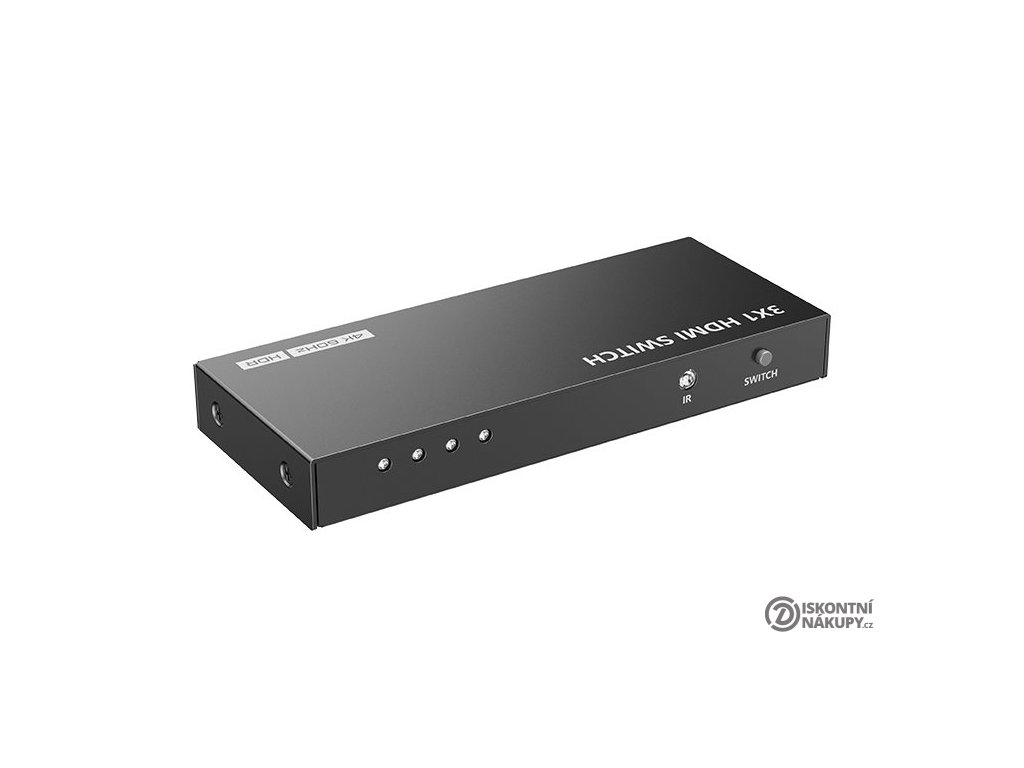 XtendLan HDMI-SW31EHHDMI přepínač ze tří vstupů na jeden výstup. Max. rozlišení 4K × 2K, HDMI 1.4a, dálkový ovladač, napájení 5 V, LED indikace vstupů.