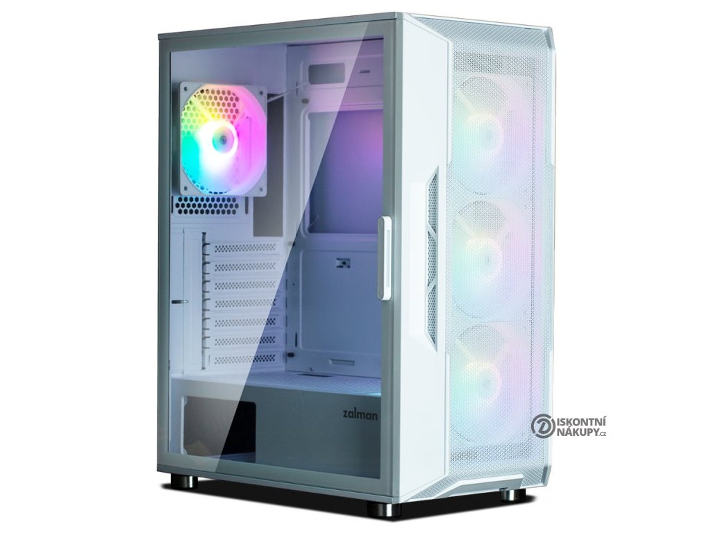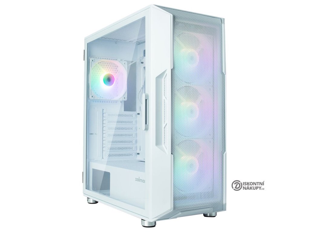 ZALMAN i3 Neo WhiteKvalitní počítačová skříň formátu Middle Tower nabízí tři 2,5" pozice pro SSD disky a dvě 3,5" pozice pro pevné disky. Předinstalovány jsou čtyři 120 mm ventilátory s RGB podsvícením. Na horním panelu se nachází dva porty USB 3.0, jeden port USB 2.0, sluchátkový výstup a audio vstup pro mikrofon. Ve skříni je dostatek prostoru pro chladič CPU do výšky až 160 mm a grafickou kartu o délce až 355 mm. Důmyslné řešení umožňuje pohodlné umístění až 360 mm dlouhého výměníku vodního chlazení na přední straně. Skříň je vybavena průhlednou bočnicí a předním panelem. Potěší také přítomnost prachových filtrů. Skříň je dodávána bez zdroje.