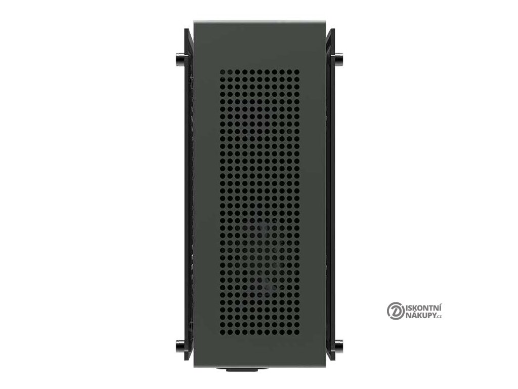 Horní panel lze osadit jedním 80 mm ventilátorem (není součástí balení). Všudypřítomná perforace zajišťuje dostatečné proudění vzduchu a tím i efektivní chlazení. Skříň je dodávána bez zdroje.