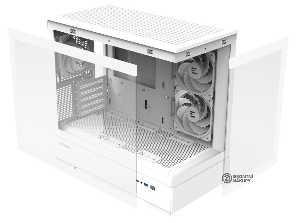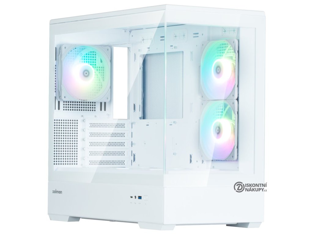 ZALMAN P30 V2Elegantní počítačová skříň nabízí stylovou prosklenou bočnici i přední panel a prvotřídní kovovou konstrukci. Osazení komponentami je lehké díky intuitivnímu systému správy kabeláže, kabely tedy nikde zbytečně nepřekáží. Skříň je osazena třemi 120mm ventilátory s ARGB podsvícením. Potěší také možnost rozšíření o dalších 6 ventilátorů. Samozřejmostí jsou prachové filtry. Důmyslné řešení umožňuje pohodlné umístění až 360 mm dlouhého výměníku vodního chlazení na horní straně. Ve skříni je dostatek prostoru pro chladič CPU do výšky až 173 mm a grafickou kartu o délce až 420 mm. Na bočním panelu se nachází jeden port USB 3.0, jeden port USB-C a kombinovaný audio port pro sluchátka a mikrofon. Skříň je dodávána bez zdroje.