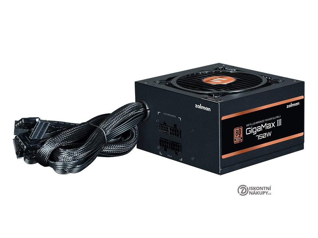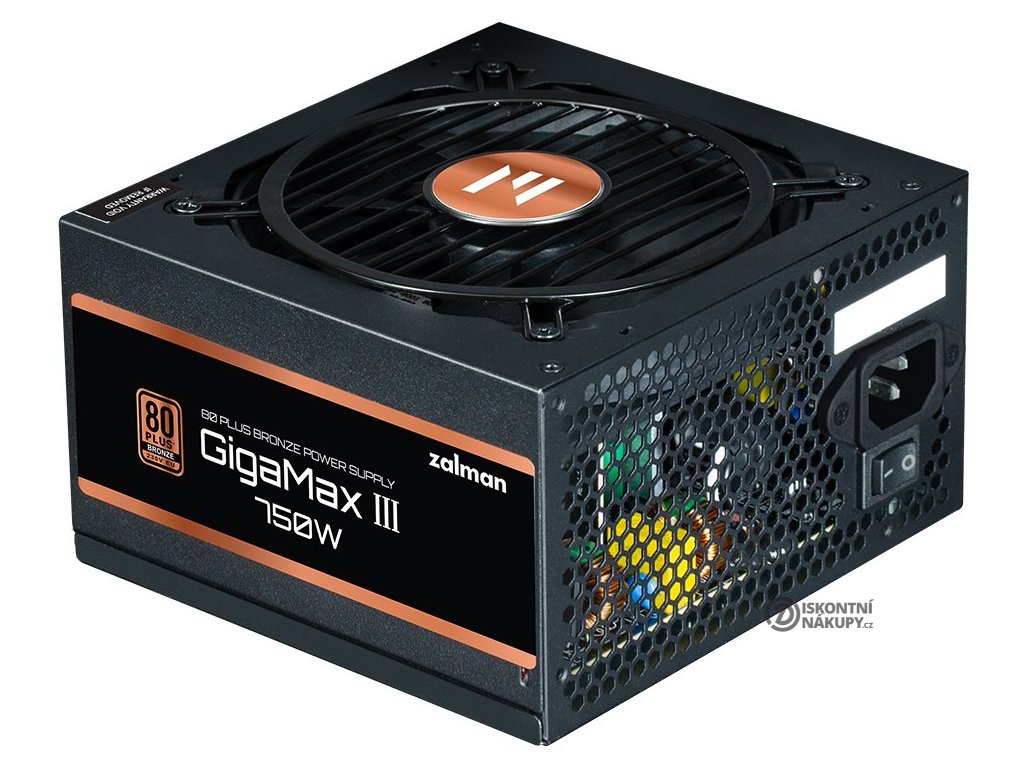 ZALMAN GigaMax III 750 WNapájecí zdroj osazen tichým 120 mm ventilátorem. Účinnost zdroje splňuje certifikaci 80PLUS Bronze.