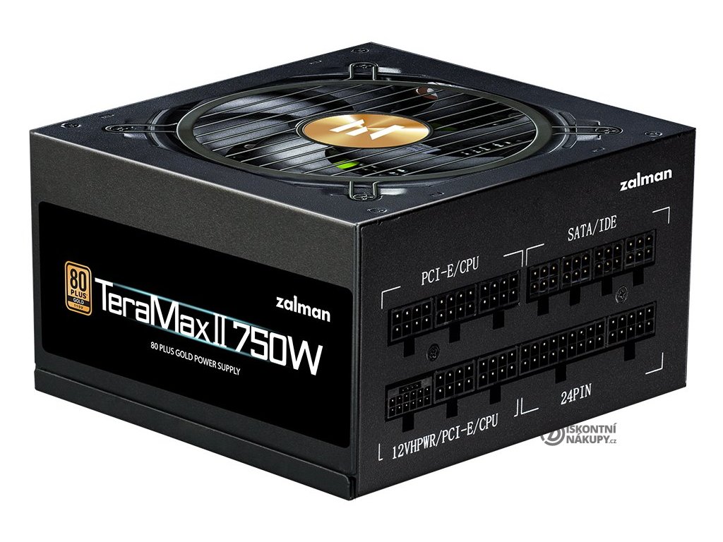 ZALMAN TeraMax II 750 WNapájecí zdroj osazen tichým 120 mm ventilátorem. Účinnost zdroje splňuje certifikaci 80PLUS Gold.
