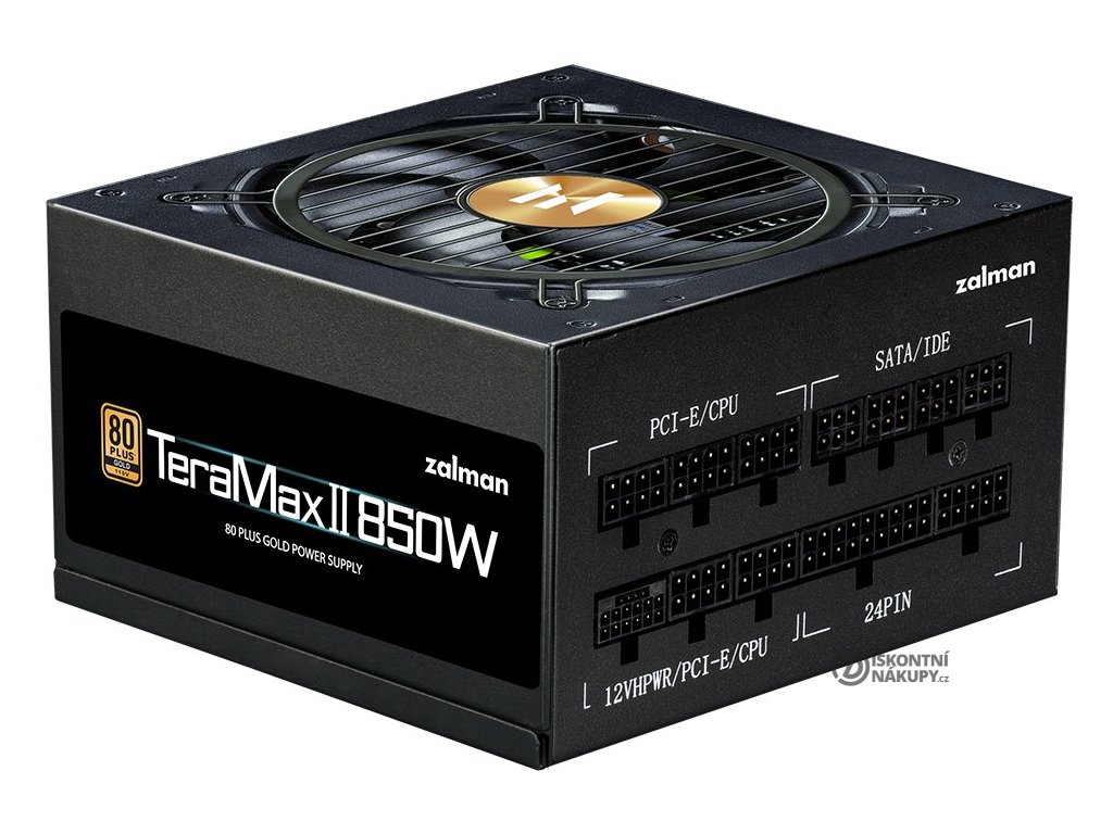 ZALMAN TeraMax II 850 WNapájecí zdroj osazen tichým 120 mm ventilátorem. Účinnost zdroje splňuje certifikaci 80PLUS Gold.