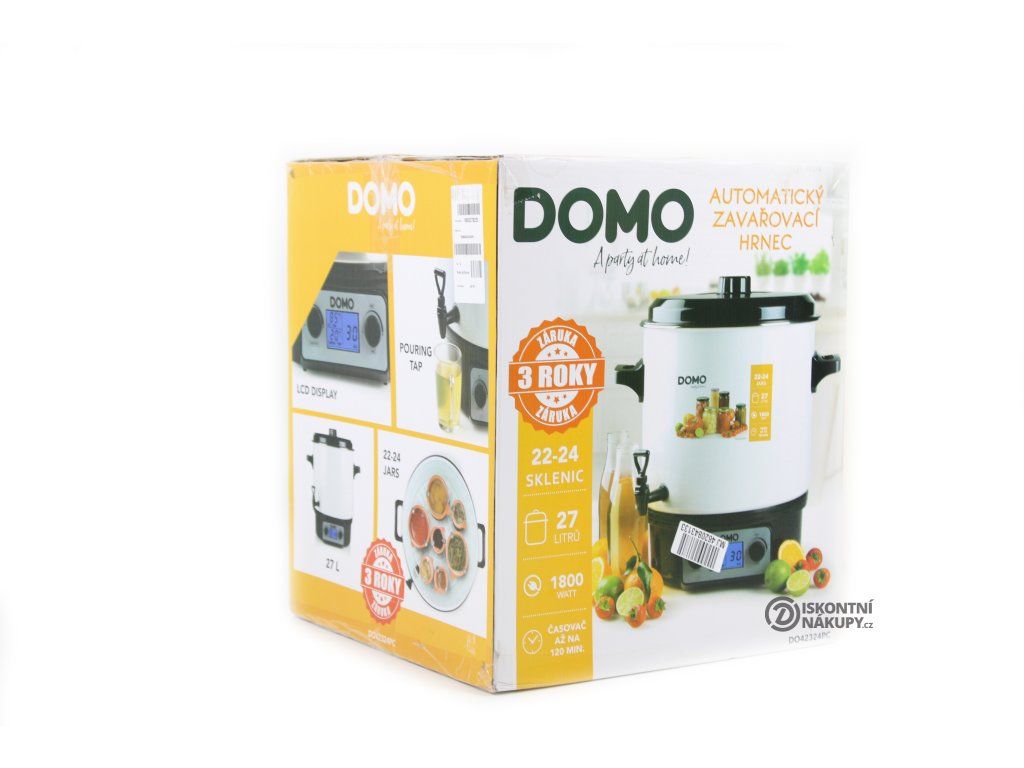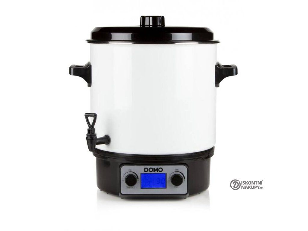 Spotřebič je vybaven praktickým výpustným kohoutkem, s jehož pomocí zbavíte hrnec vody po skončení zavařování. Díky němu ale můžete hrnec využít také při rodinných akcích jako velkou termosku, ve které můžete připravit, uchovat, a následně stáčet horké nápoje, jako například svařené víno nebo čaj. Zavařovací hrnec Domo má zkrátka mnohostranné využití. Výborně poslouží také pro udržování horké polévky nebo guláše před jejich servírováním, pro blanšírování zeleniny, nebo ohřívání ve vodní lázni. Hrnec o hmotnosti 7 kg má rozměry 35 x 29 x 35 cm.