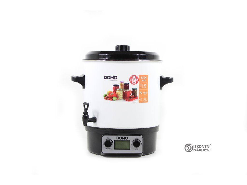 zavařovací hrnec • objem: 27 l • pojme 14–18 zavařovacích sklenic • příkon: 1 800 W • časovač do 120 minut • zvuková signalizace • podsvícený LCD displej • smalt