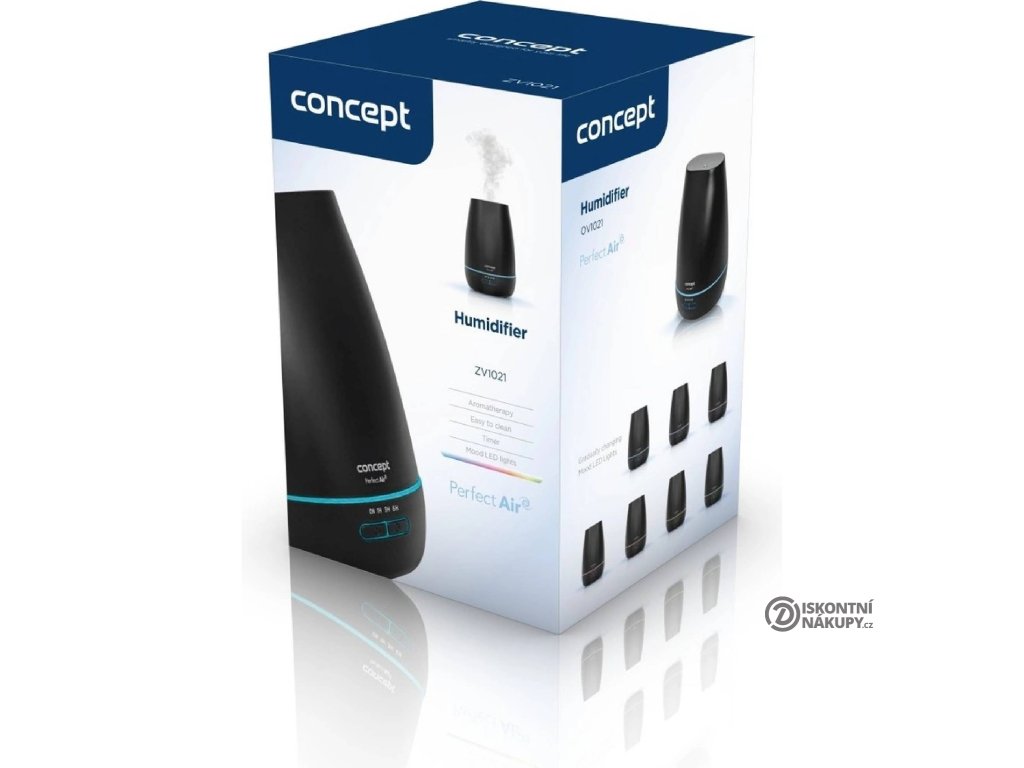 Zvlhčovač vzduchu ZV1021 z řady Perfect Air je spojením zvlhčovače a aroma difuzéru. Vyniká moderním designem doplněným o barevné ambientní podsvícení. Je vhodný do místností o velikosti až 20 m² a nabízí 2 režimy s maximální výkonem 45 ml/h. Díky svému kompaktnímu rozměru zapadne do každé domácnosti. Disponuje zásobníkem na vodu s objemem 300 ml, který dokáže vytvářet jemnou páru po dobu až 10 h. Při nedostatku vody se přístroj automaticky vypne.